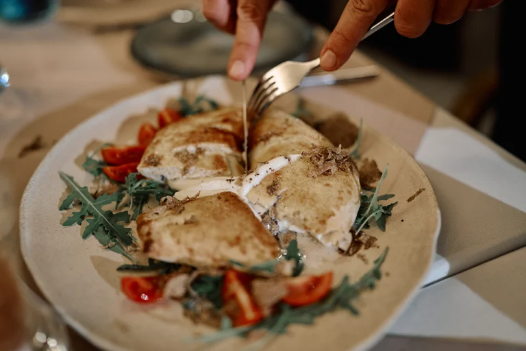 Salad (100g), Chicken breast (80g), Parmesan (30g), Croutons (40g), Caesar Dressing (50g)